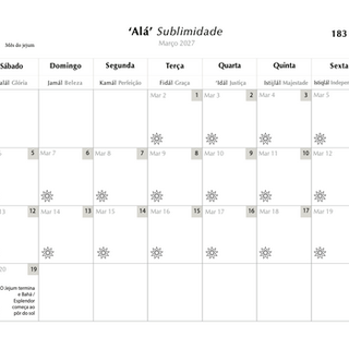 ✓ Dias da semana, bahá'ís e gregorianos.